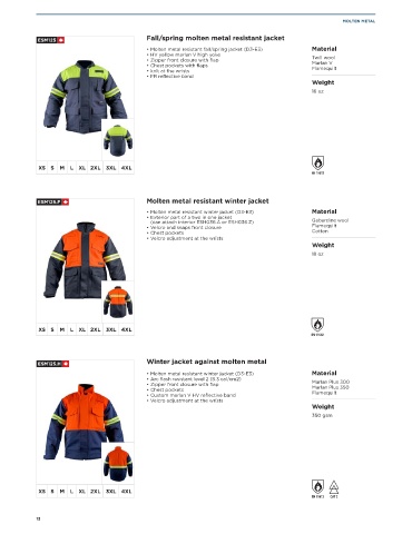 • Molten metal resistant fall/spring jacket (D3-E3) Material