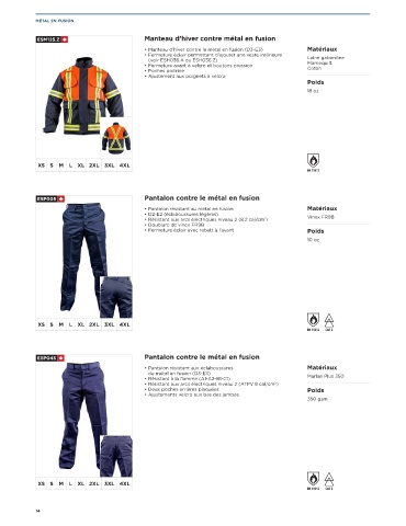 ESM125.Z Manteau d’hiver contre métal en fusion