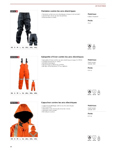 • Pantalon contre les arcs électriques niveau 2 (+8 cal/cm ) Matériaux